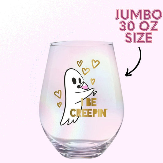Pack of 6 I Be Creepin' Jumbo Stemless Wine Glass in Iridescent | 30 Oz. | Holds an Entire Bottle of Wine
