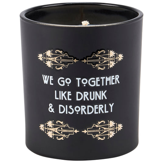 Gin Scented Art Deco Soy Candle | We Go Together Like Drunk And Disorderly Jar Candle | Gold Accents Matte Black Glass | 35hrs Burn Time