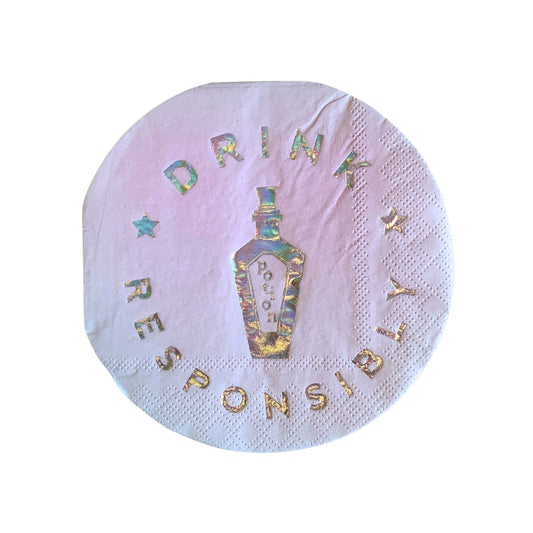 Drink Responsibly Silver Iridescent Potion Round Party/Beverage/Cocktail Napkins