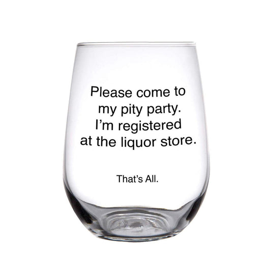 Please Come To My Pity Party Stemless Wine Glass in Clear | 17 oz.
