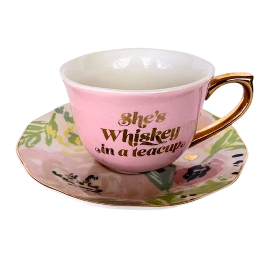 She's Whiskey in a Tea Cup and Saucer Set in Pink and Floral