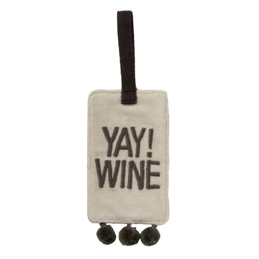 Yay! Wine Velvet Wine Bottle Tag with Pom Trim Details