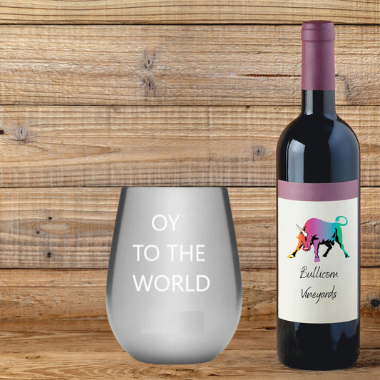Oy vey! Oy To The World Stemless Wine Glass | Snarky Hanukkah or Non-Christmas Glass