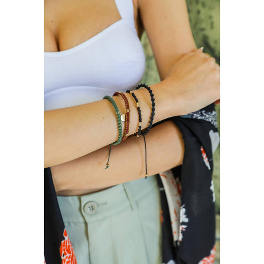 Stackable Bead and Woven Cord Stack of 5 Bracelets | Cute & Trendy Adjustable Stacked Fashion Jewelry
