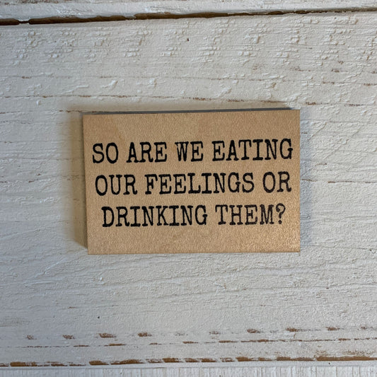 So Are We Eating Our Feelings Or Drinking Them Wood Magnet l 2" x 3"