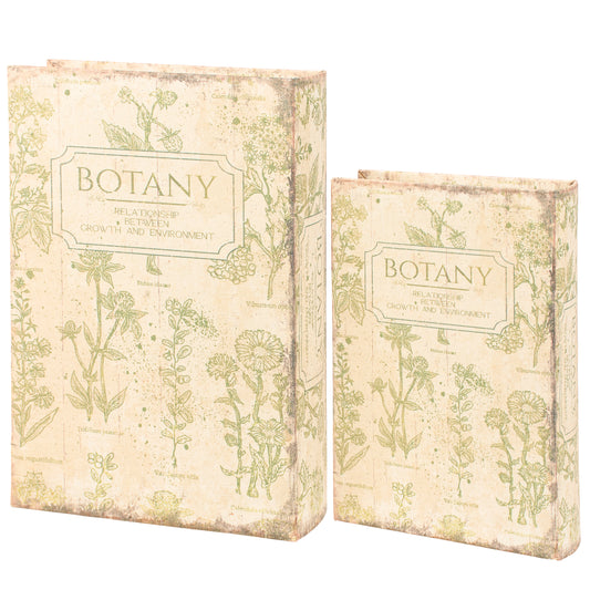 Botany Book Box Set of 2 | Vintage Book Shaped Storage Stash Trinket Boxes