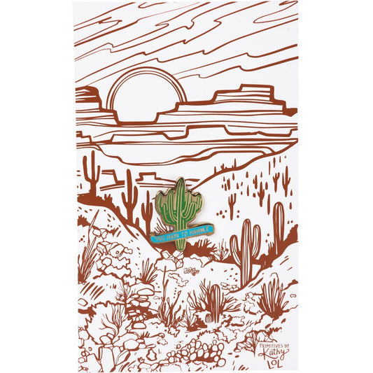Too Hard To Handle Cactus Enamel Pin on Gift Card