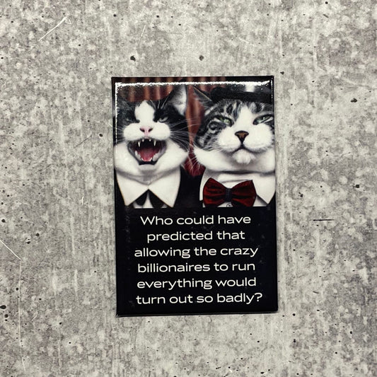 Allowing The Crazy Billionaires To Run Everything Rectangular Magnet | Cats Fridge Magnet | 3" x 2"