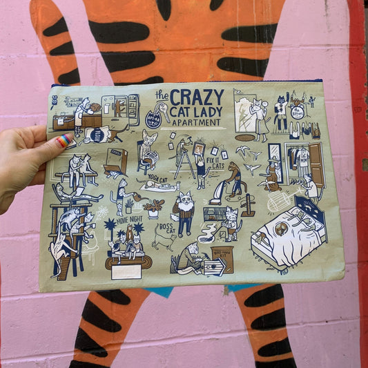 Jumbo Pouch Crazy Cat Lady Apartment Recycled Material Jumbo Zipper Folder | 14.25" x 10"