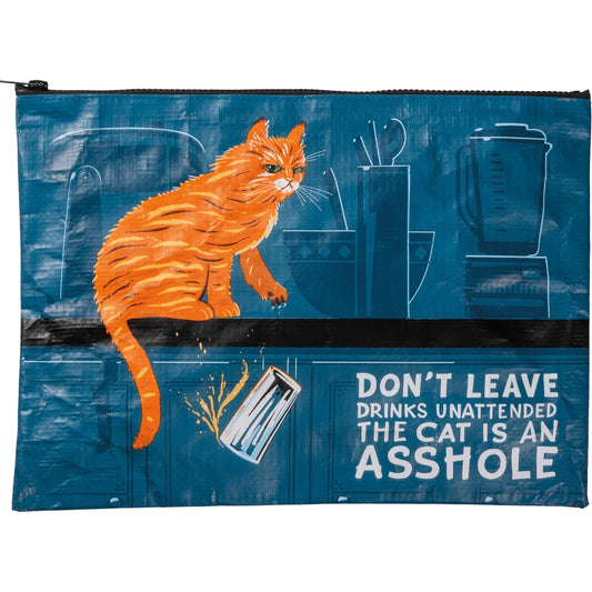 Jumbo Pouch Don't Leave Drinks Unattended Cat Design Recycled Material Jumbo Zipper Folder | 14.25" x 10"