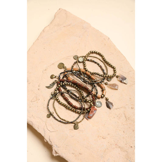 Boho Stone and Bead Stack Bracelet | Stretch Stackable Jewelry