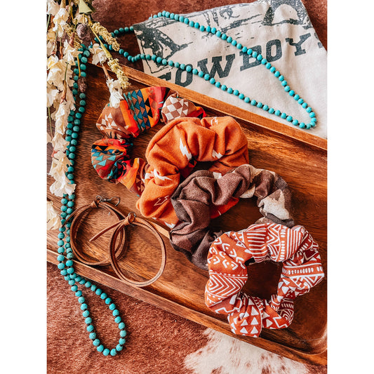 Western Boho Scrunchie in Rust | Handmade Hair Tie