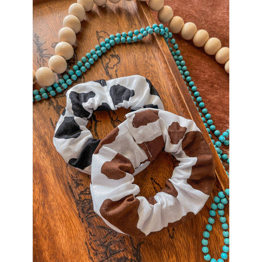 Western Cow Print Faux Suede Scrunchie | Handmade Hairtie