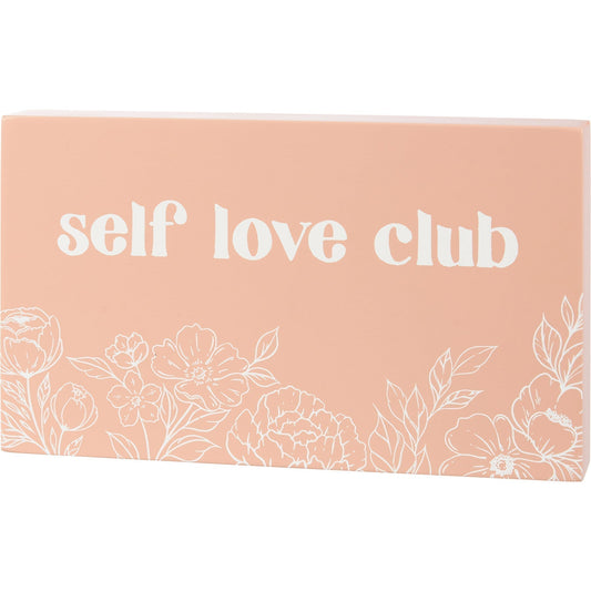 Self Love Club Inspo Block Sign | Inspirational Wooden Wall Desk Sign | 7.50" x 4.50" | Gift for Her