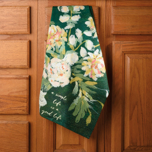 A Simple Life is a Good Life Kitchen Towel | Floral Cotton Hand Tea Dish Cloth | 18" x 28"