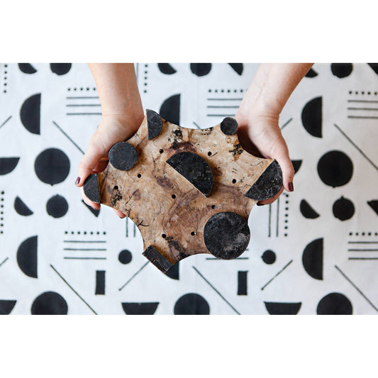Domino Cotton Block Printed Dishtowel | Minimalist Cotton Hand Tea Dish Cloth | 18" x 28"