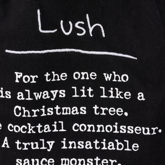 Lush - The One Who's Lit Like a Christmas Tree Funny Black Cotton Dish Cloth Towel | 28" x 28"