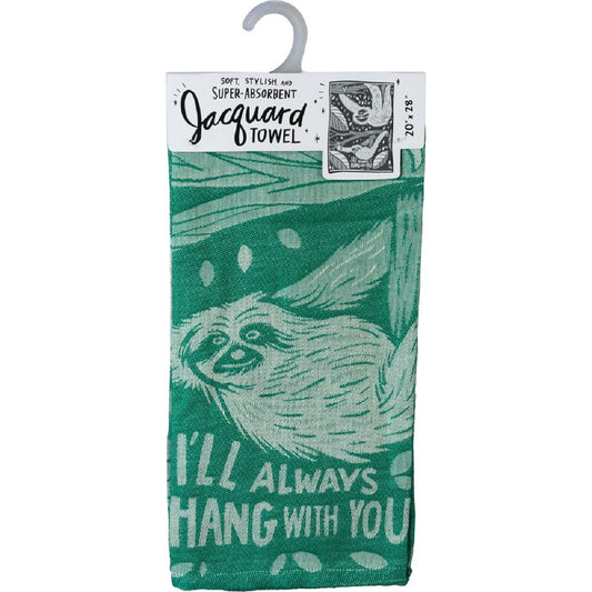 I'll Always Hang With You Sloth Green Funny Snarky Dish Cloth Towel | Ultra Soft and Absorbent Jacquard | All-Over Design | Unfolds 20" x 28" | Giftable
