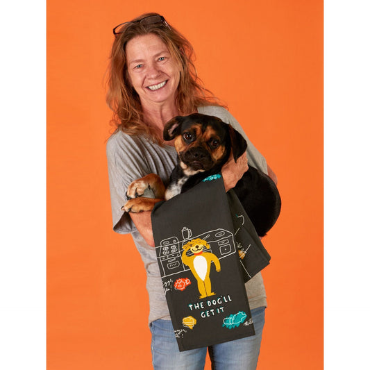 The Dog'll Get It Screen-Printed Multicolored Funny Snarky Dish Cloth Towel | Kitchen Tea Hand Cotton Dish Cloth | 28" x 21" | BlueQ at GetBullish