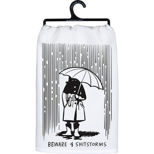 Beware Of Shitstorms Kitchen Towel | Black and White Cotton Hand Tea Dish Cloth | 28" x 28"
