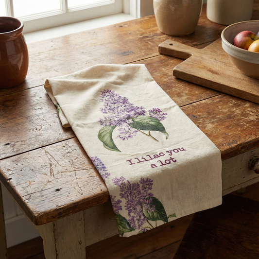 I Lilac You A Lot Dish Cloth Towel | Cotten Linen Novelty Tea Towel | Cute Kitchen Hand Towel | 18" x 28"