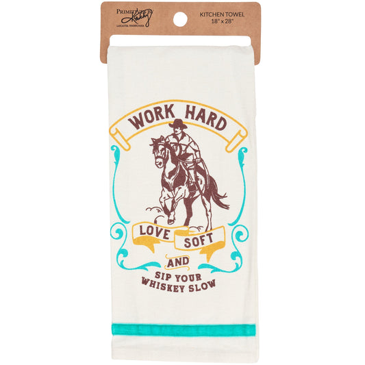 Work Hard Love Soft Sip Your Whiskey Slow Kitchen Towel | Cowboy Western-Themed Tea Hand Dish Cloth
