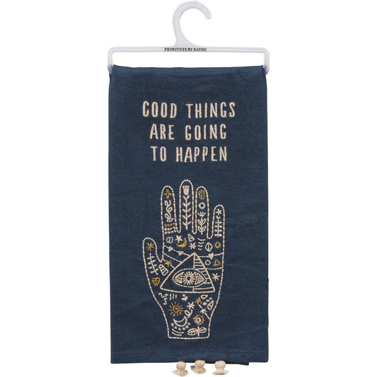 Good Things Are Going To Happen Dish Cloth Towel | Cotton and Linen | Embroidered with Tassels | 20" x 26"