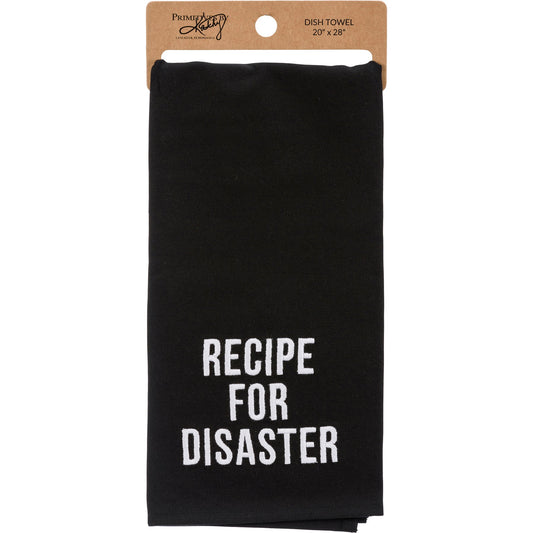 Recipe For Disaster Dish Cloth Towel | Novelty Tea Towel | Embroidered Text | 20" x 28"