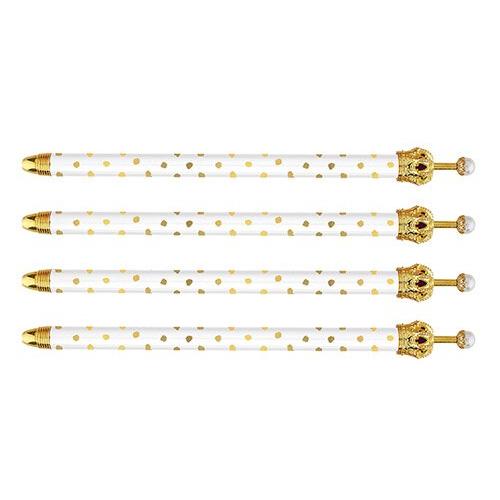 White and Gold Polka Dot Crown Pen - Set of 12 | Giftable Pens | Novelty Office Desk Supplies