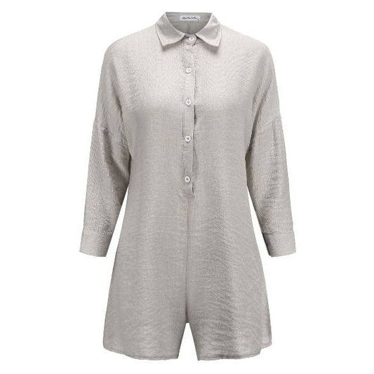 Button Shirt Cozy Rompers in Grey | One-Piece Long Sleeves Apparel [Size SM-XL]