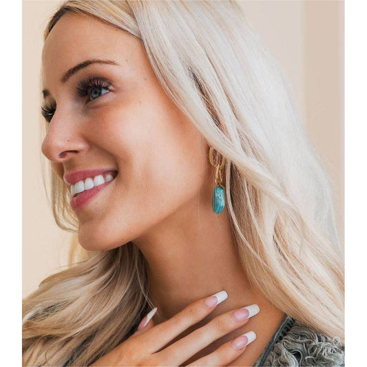 Turquoise Stone Drop Chain Earrings 💠 Bohemian Style Dangle Fashion Jewelry