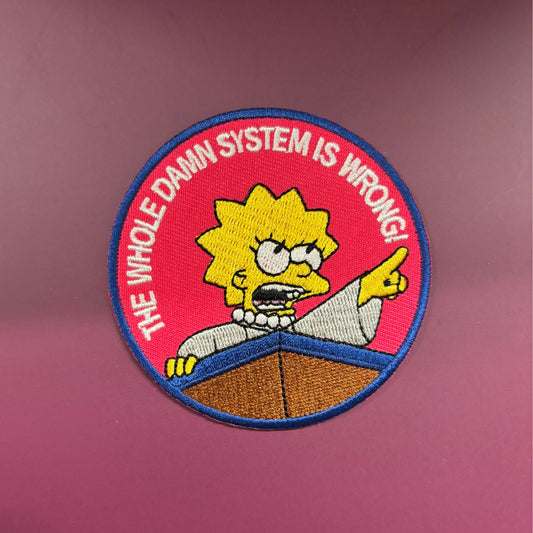 The Simpsons Lisa Protest Patch | Whole Damn System Is Wrong Embroidered Iron-On Patch