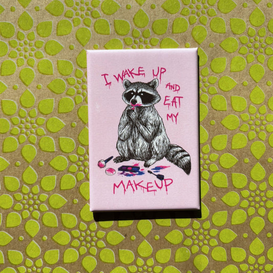I Wake Up and Eat My Makeup Funny Raccoon Rectangular Magnet | Refrigerator Magnetic Surface Decor
