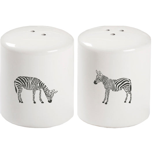 Zebra Salt And Pepper Shakers Set in White | Farmhouse Stoneware | Gift for Her