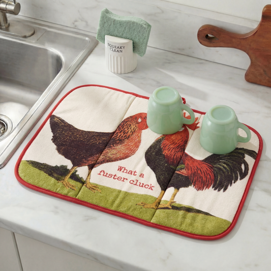 What A Fuster Cluck Ultra-absorbent Drying Mat | Hen Rooster Dish Drainer Pad | 21" x 14"