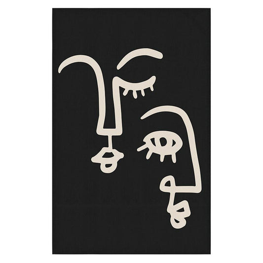 Line Art Human Faces Black Kitchen Tea Towel | 18" x 28" Cotton Dish Towel