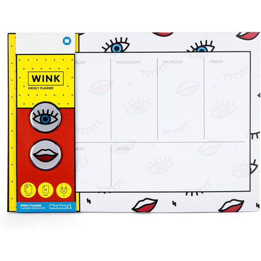 Wink Weekly Planner | 2 Magnets | Pop Art Eyes and Lips Print