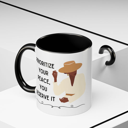 Prioritize Your Peace, You Deserve It Accent Coffee Mug 11oz