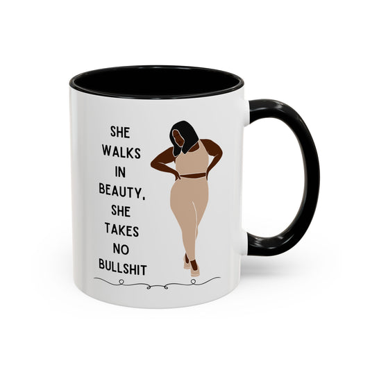 She Walks in Beauty, She Takes No Bullshit Accent Coffee Mug 11oz