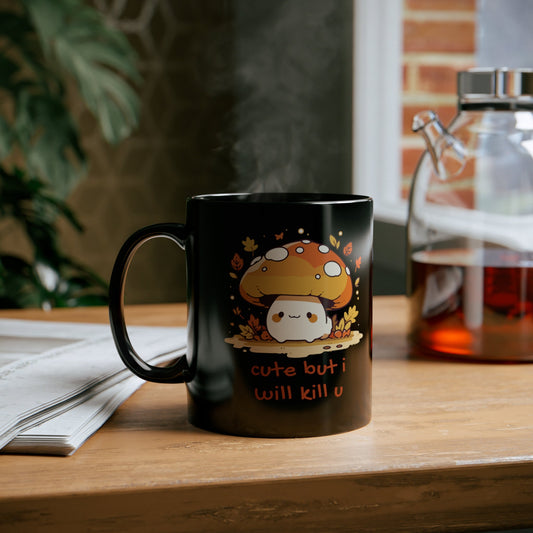 Cute But I Will Kill U Mushroom Mug 11oz Black Mug