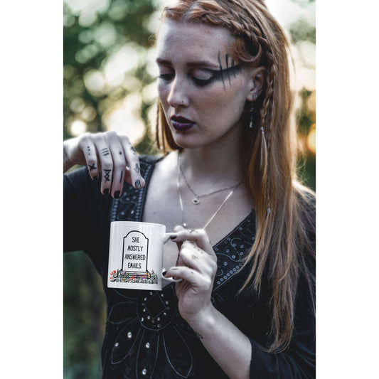 She Mostly Answered Emails in Grave Design Ceramic Mug 11oz