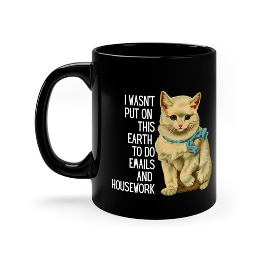 I Wasn't Put On This Earth To do Emails And Housework Black Kitten Mug