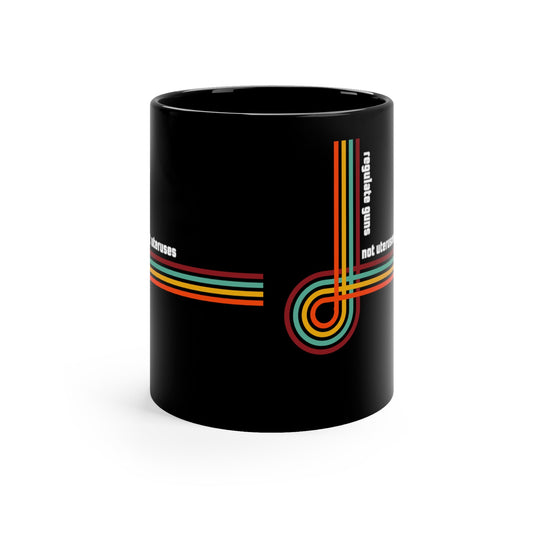 Regulate Guns Not Uteruses Pro-Choice Retro Rainbow Mug in Black