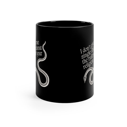 I Don't Give One Single Shit About the Rules of Your Religion Snake Mug in Black