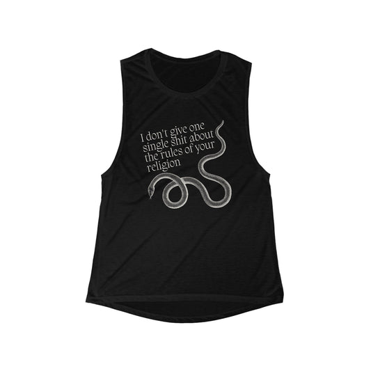 I Don't Give One Single Sh*t About the Rules of Your Religion Women's Flowy Scoop Muscle Tank in Snake Motif