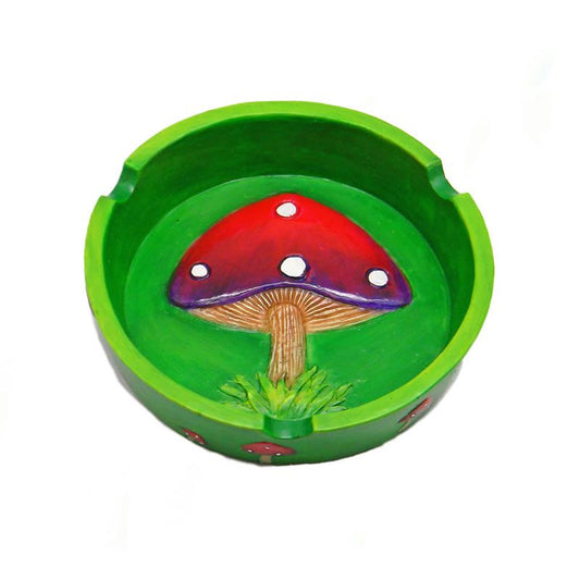 Groovy Mushroom Ashtray in Bright Green and Red | Hand Painted Round Resin Ash Bin | 4.5"