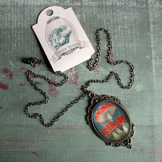 Moonlit Mushrooms Ornate Oval Cottage Core Pendant Necklace | Handmade in the US