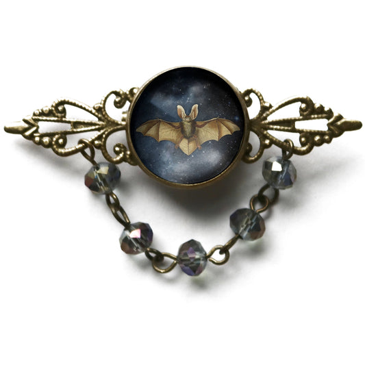 Starry Goth Bat Bead and Filigree Halloween Brooch | Handmade in the US