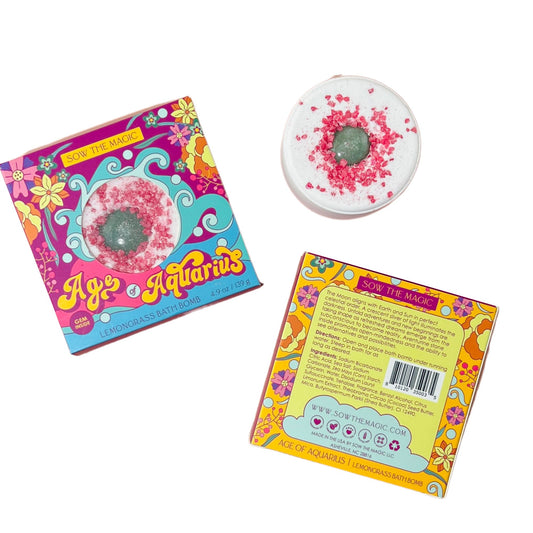 Age of Aquarius Lemongrass Bath Bomb with Aventurine Stone | Relaxing Bath Fizzer in Lemongrass Scent