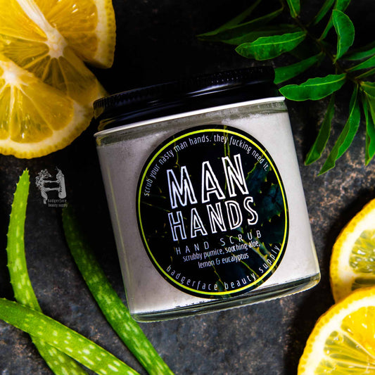 Man Hands Pumice Hand Scrub and Novelty Gift for Men | Moisturizer and Exfoliator Scrub in Giftable Glass Jar